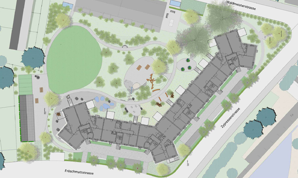 Durch den Einbezug der Mieter in die Planung und der Bildung einer ‚Gartengruppe’ werden die sozialen Kontakte gefördert sowie Betrieb und Unterhalt der Anlage gesichert.